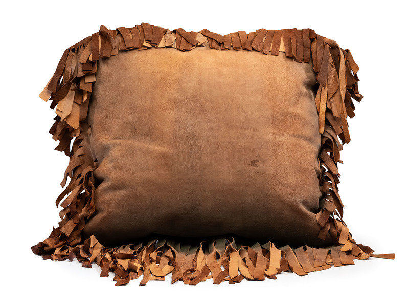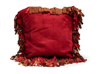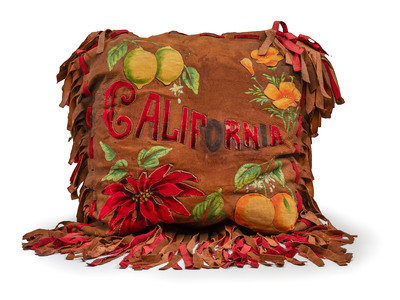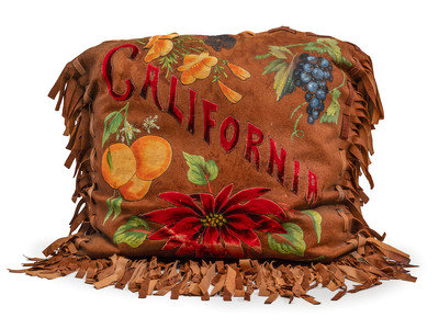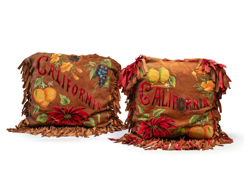A Pair of California Arts and Crafts Painted and Appliqued Leather Pillows