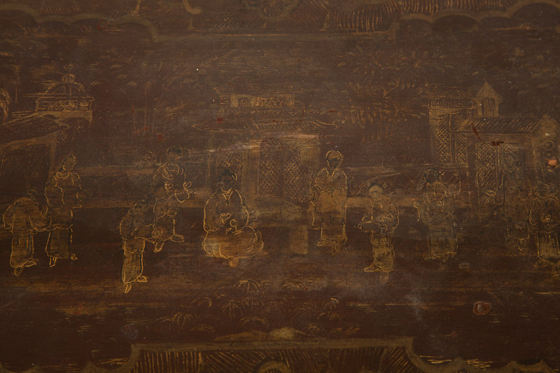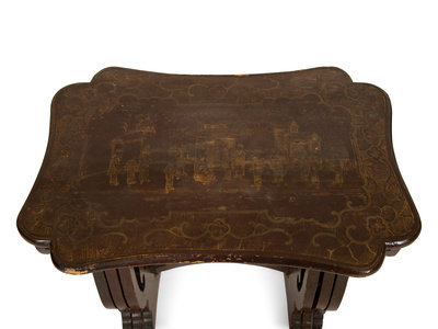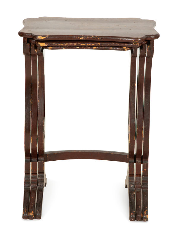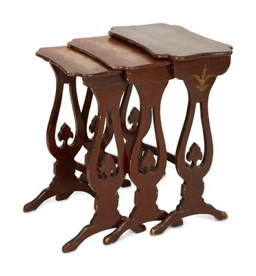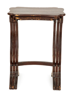 A Set of Three Chinese Export Quartetto Tables in Red and Gilt Lacquer