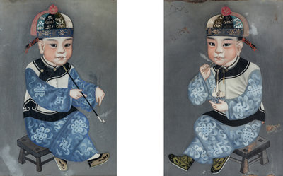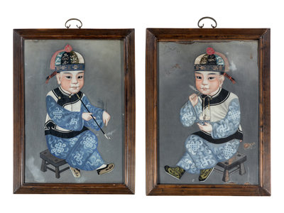 A Pair of Chinese Reverse-Painted Glass Pictures