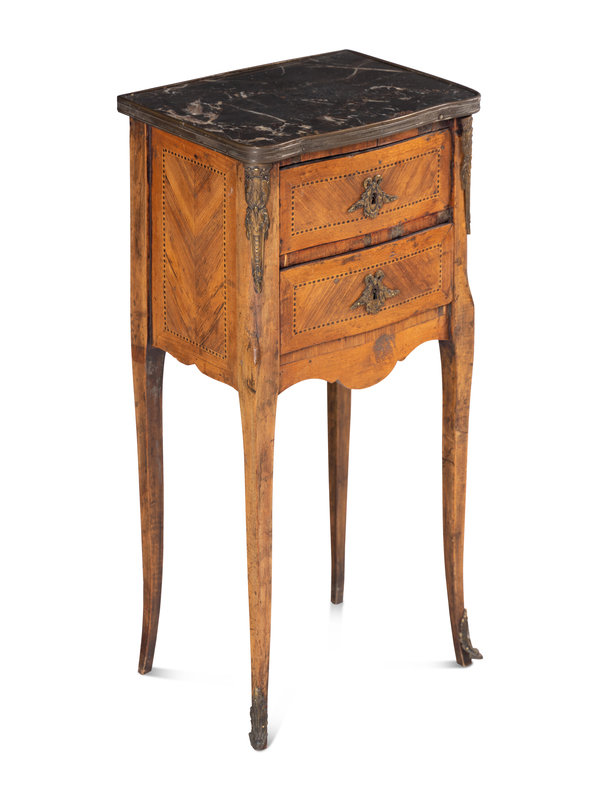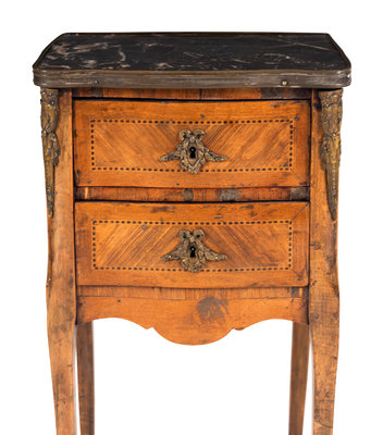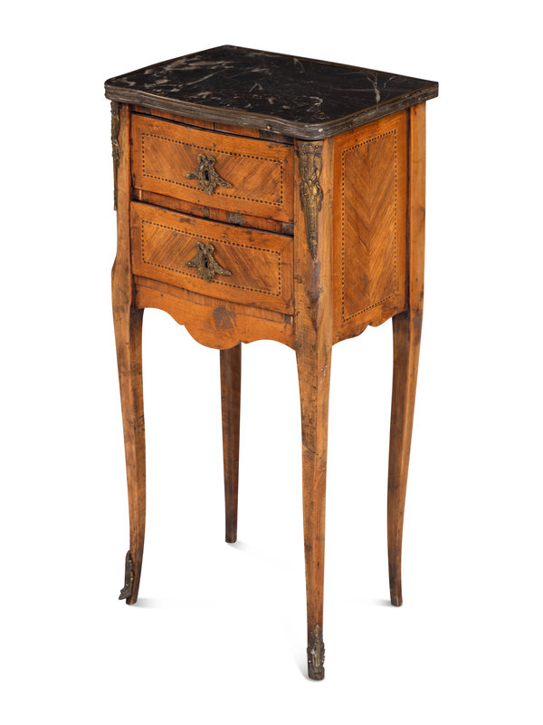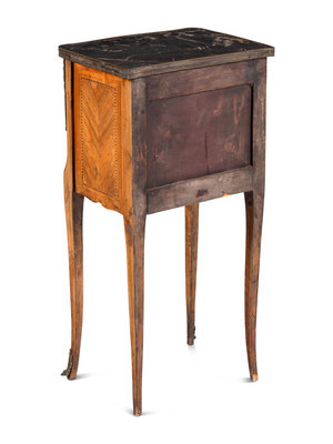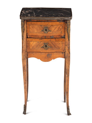 A Louis XV/XVI Transitional Style Marquetry Marble Inset Side Table