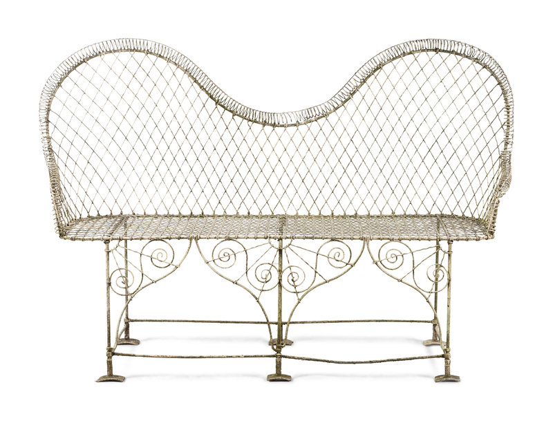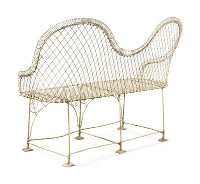 A Painted Wire Garden Bench