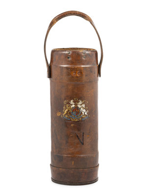 An English Leather Ammunition Bucket or Umbrella Stand