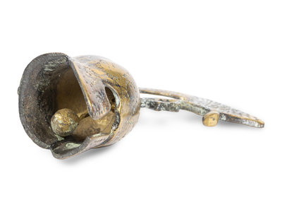 together with a brass spartan helmet form table bell.