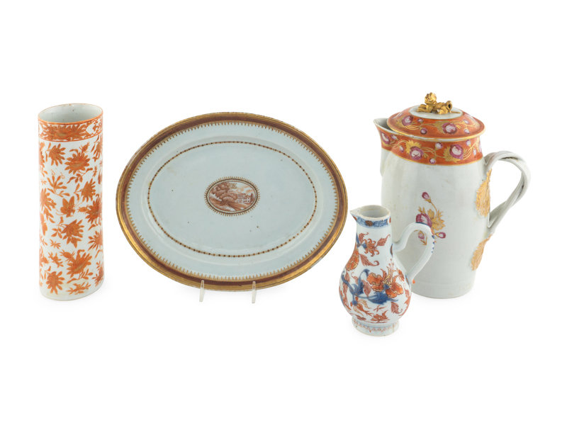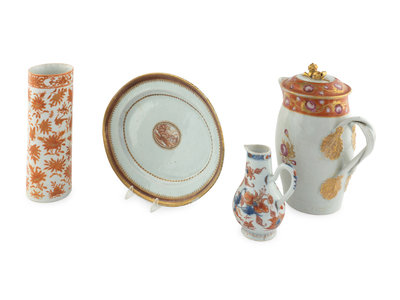 Four Chinese Export Parcel Gilt Porcelain Articles