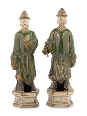 A Pair of Chinese Ming Style Pottery Tomb Figures