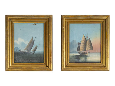 Two Watercolor and Gouache Paintings of Chinese Junks