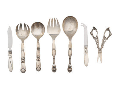 comprising a no. 38 and no. 57 serving set, and two 'Cactus' pattern cheese knives