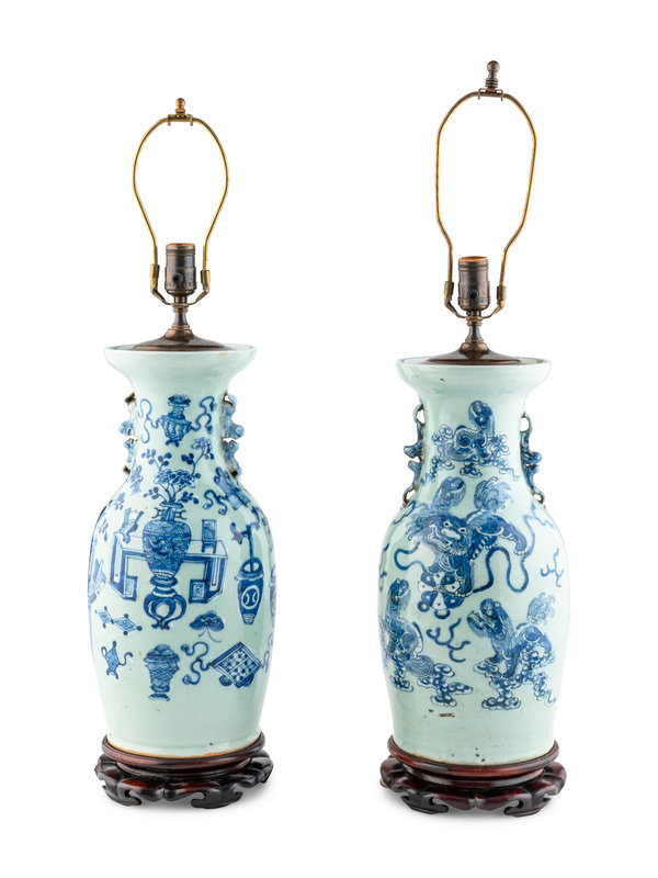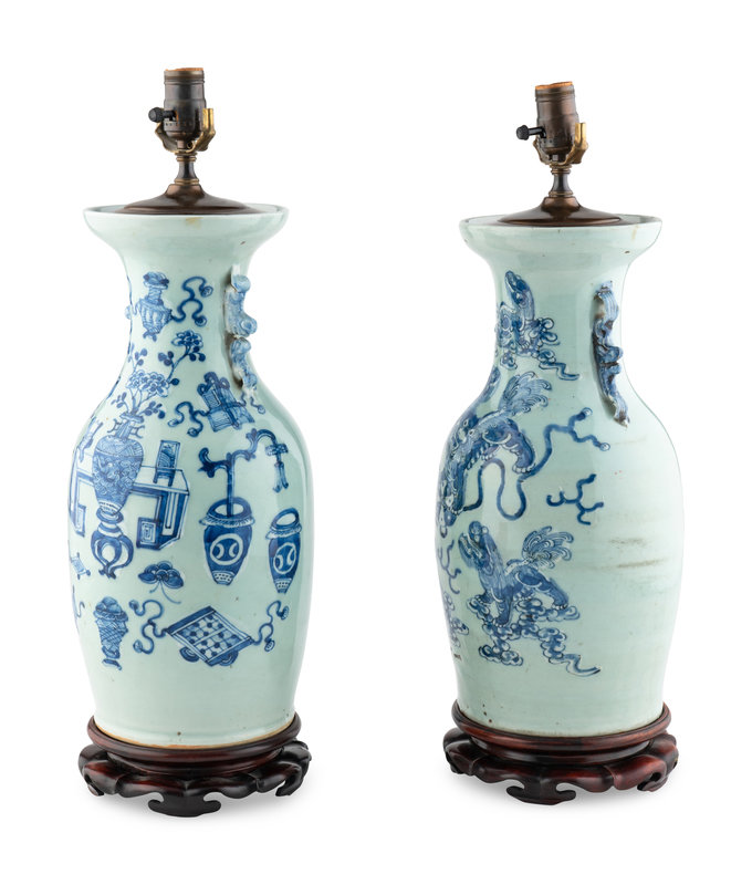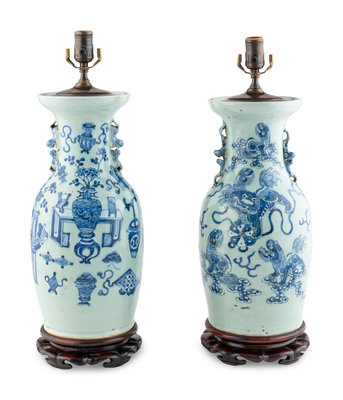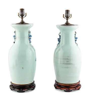 A Pair of Chinese Porcelain Vases Mounted as Lamps
