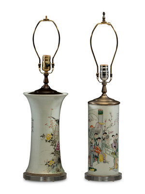 Height of larger base 12 1/2 inches; height overall 27 inches.