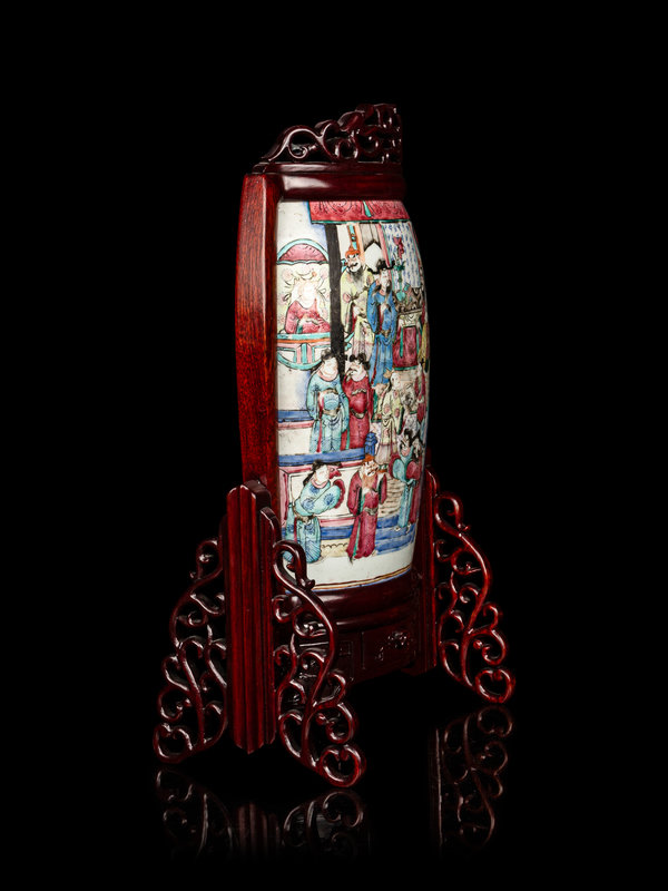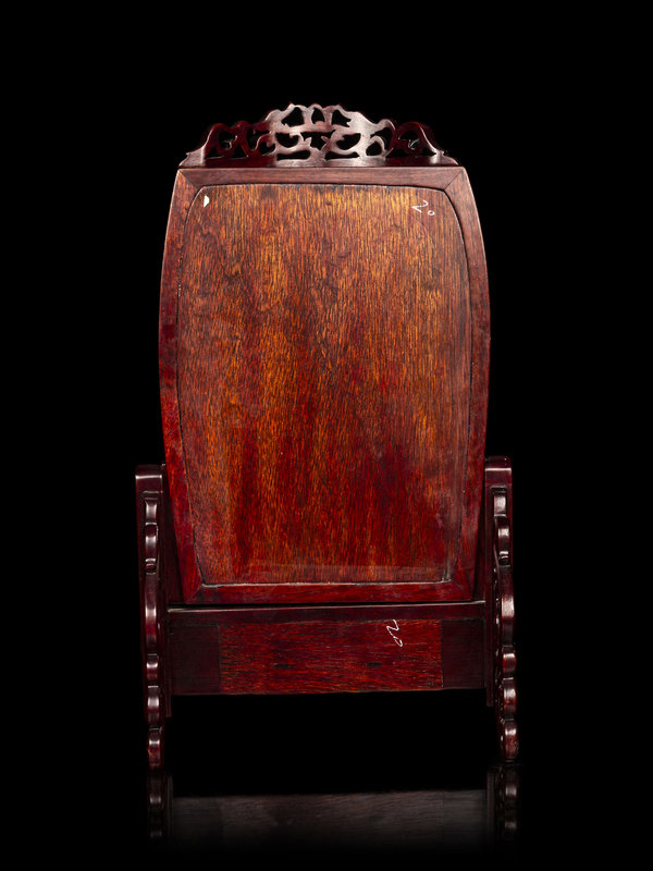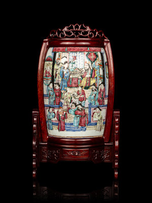 A Chinese Famille Rose Porcelain Plaque Mounted Table Screen