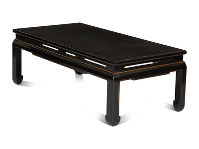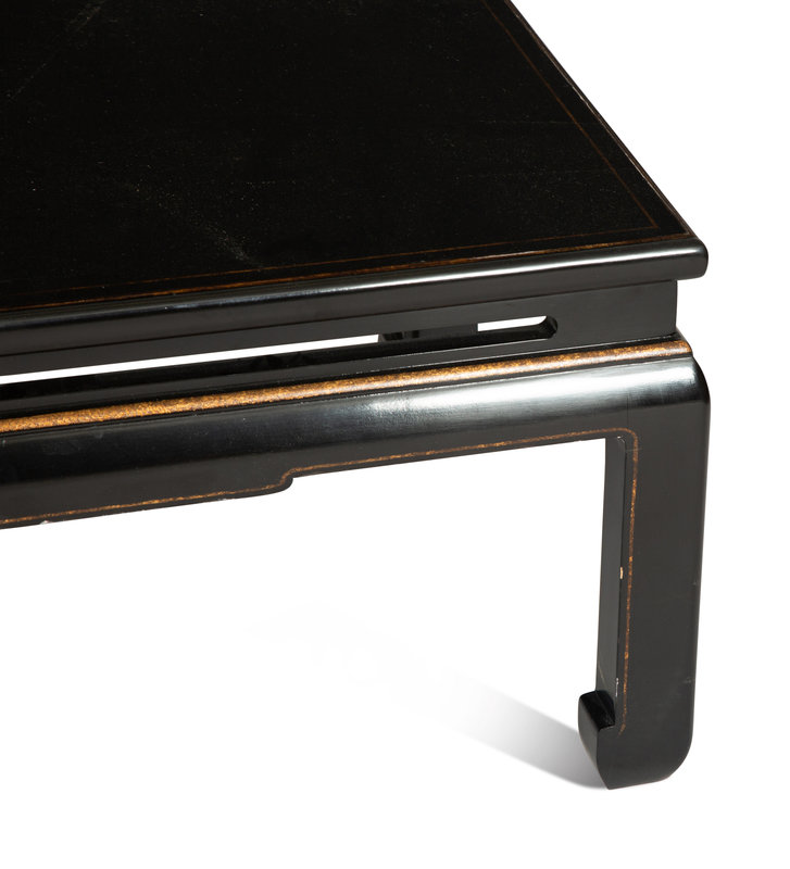 A Chinese Export Ming Style Black and Parcel Gilt Lacquer Low Table