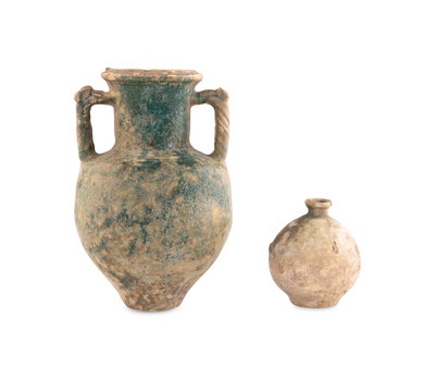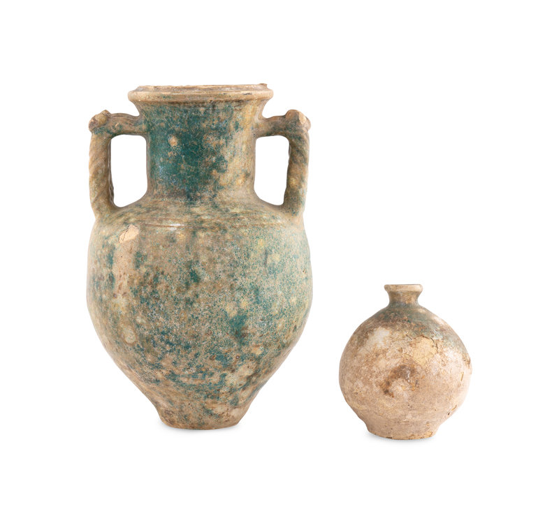 A Parthian Glazed Pottery Amphora and a Parthian or Sassanian Turquoise Glazed Pottery Vase