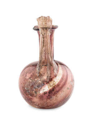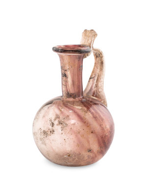 A Roman Glass Jug with Fluted Handle and Thumb Rest