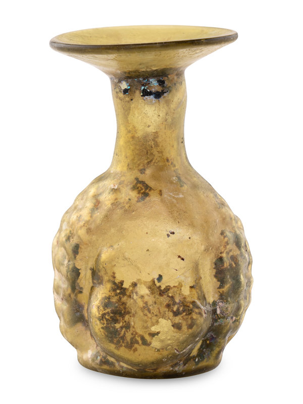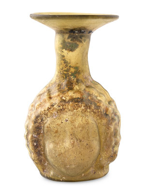 A Roman Glass Janus Head Flask