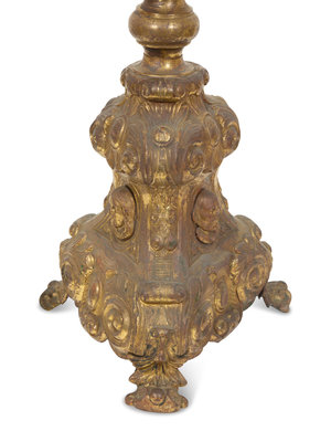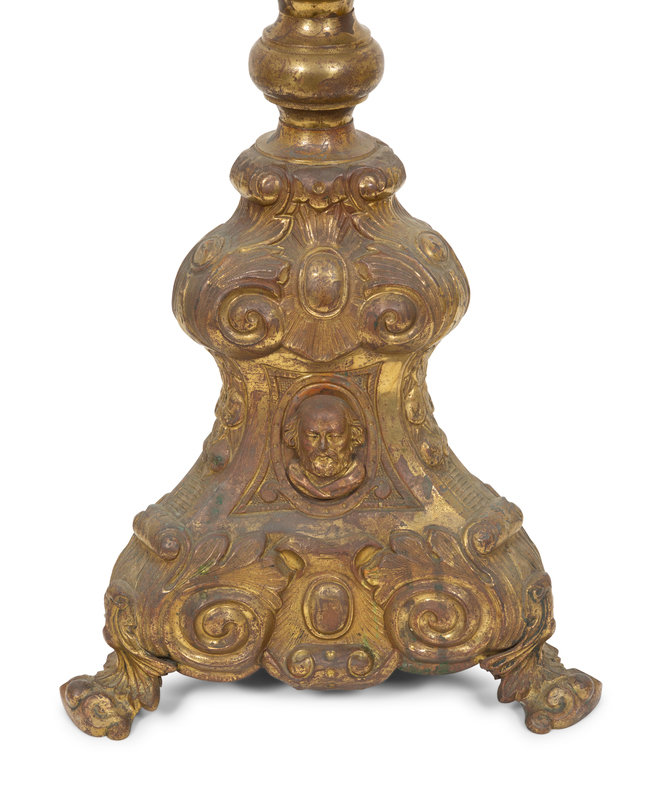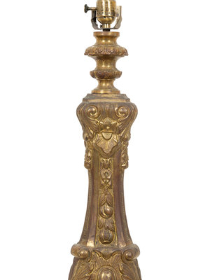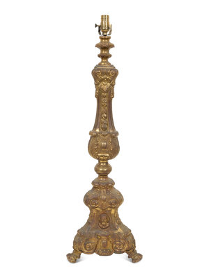 A Continental Chased Brass Pricket-Style Table Lamp