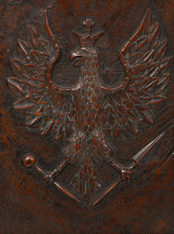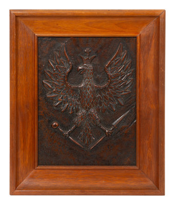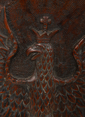 A Continental Carved Wood Panel of Spread Winged Crowned Eagle