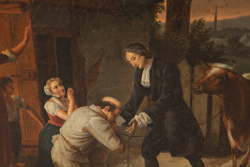 Priest Giving a Gift of a Cow at the Door of A Cottage