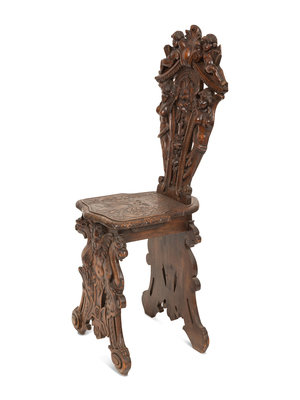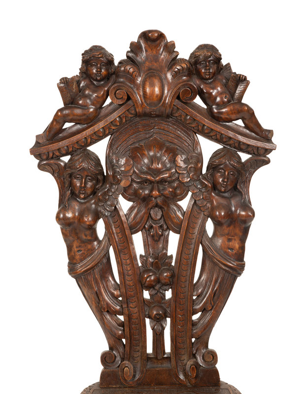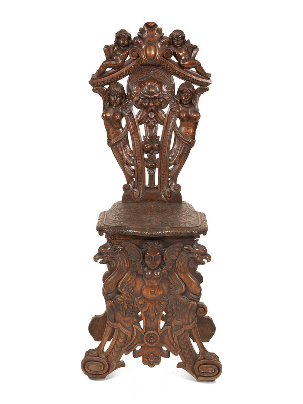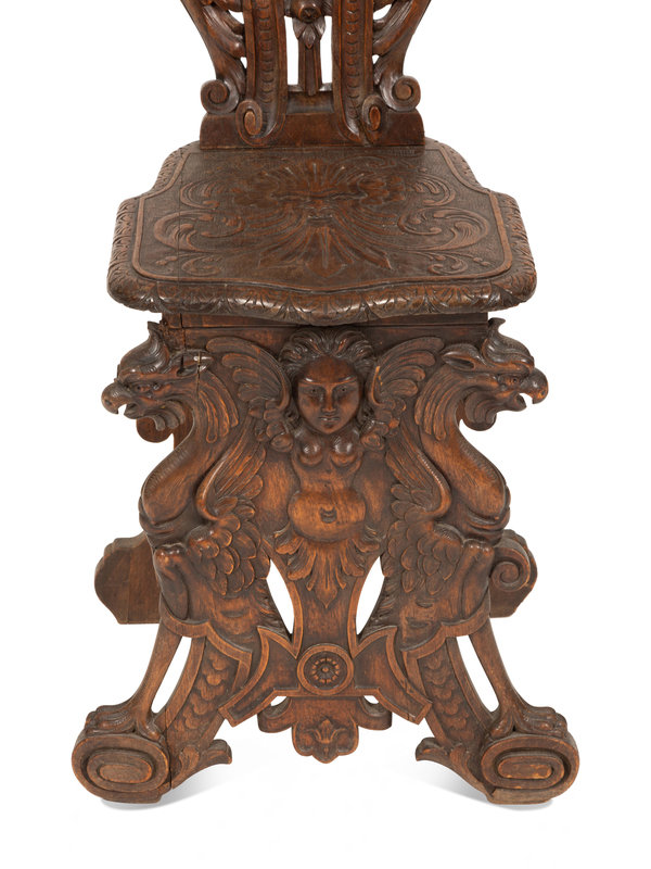 An Italian Renaissance Revival Carved Walnut Sgabello Hall Chair