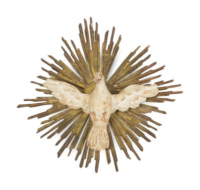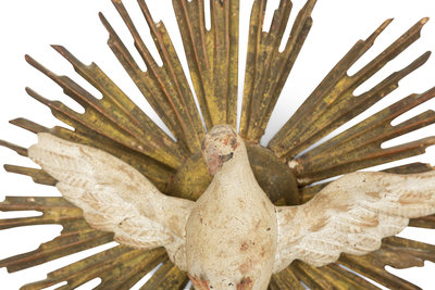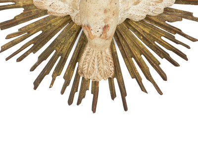 An Italian Carved and Painted Giltwood Dove on Sunburst