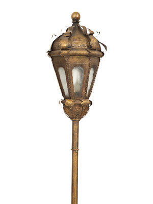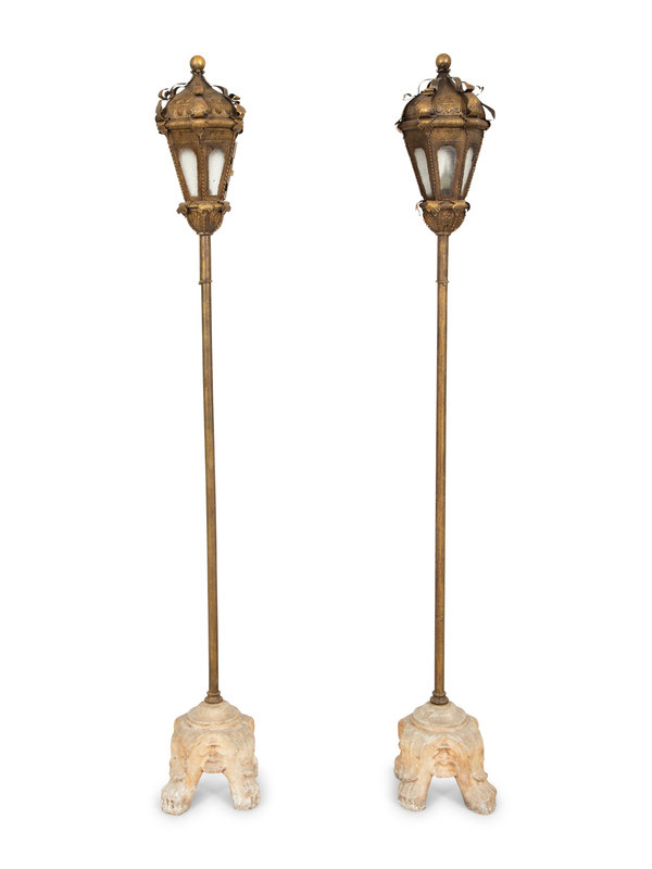 A Pair of Gondola Style Stamped Brass Floor Lamps