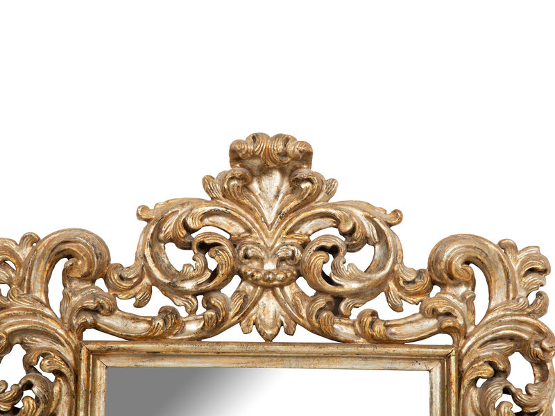 An Italian Rococo Style Silvered Wood Mirror