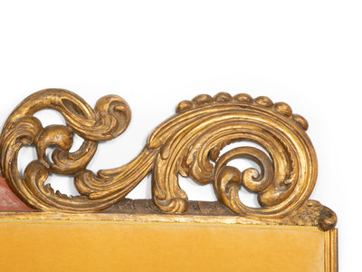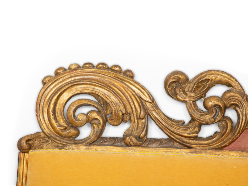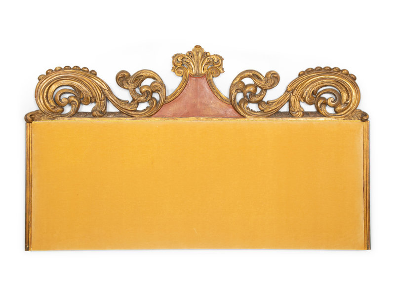 An Italian Painted and Parcel Gilt Upholstered Headboard with Upholstered Lower Panel