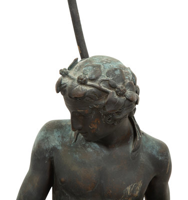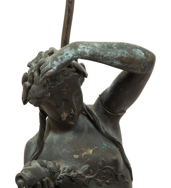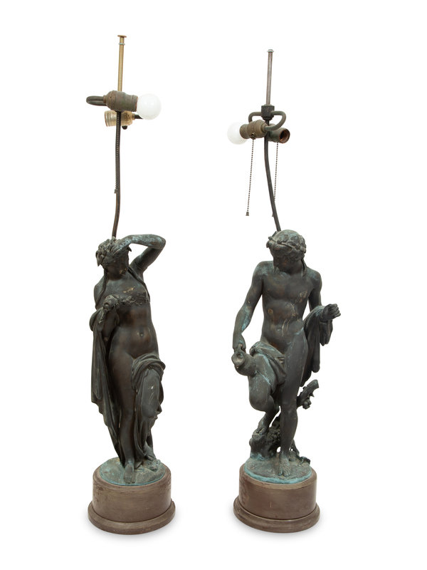 A Pair of Italian Patinated Metal Figures Mounted as a Lamps
