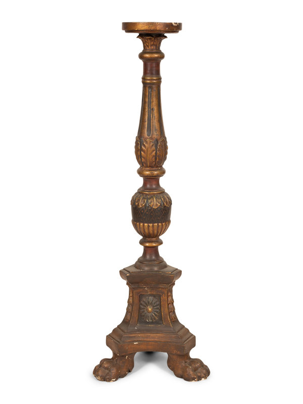 An Italian Painted and Parcel Gilt Tall Pedestal