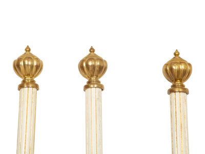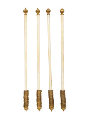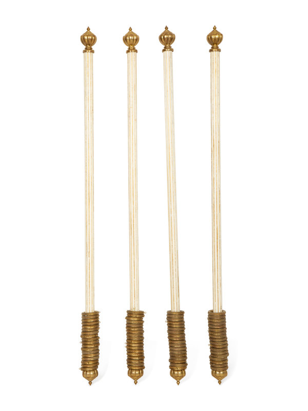 Four Italian Painted and Parcel Gilt Curtain Rods with Brass Cap Ends