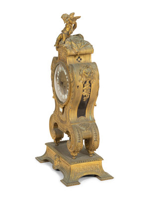 A Louis XV Style Gilt Bronze Mantle Clock on Stand