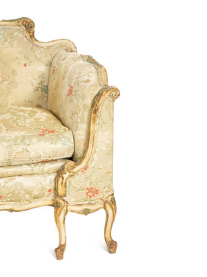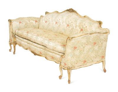 A Louis XV Style Painted and Parcel Gilt Sofa