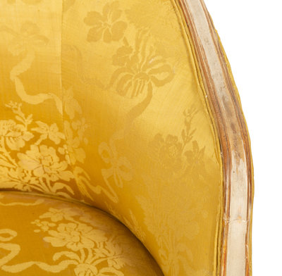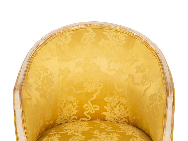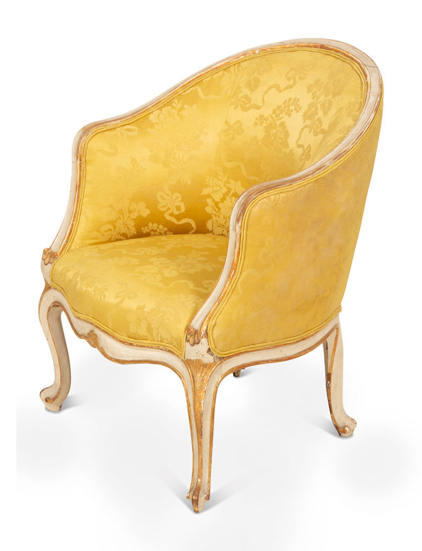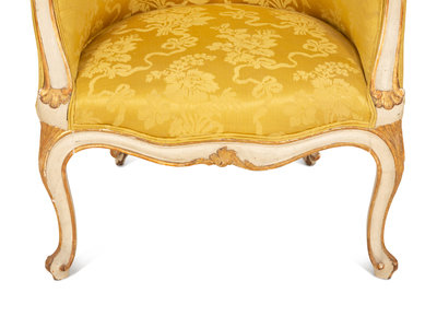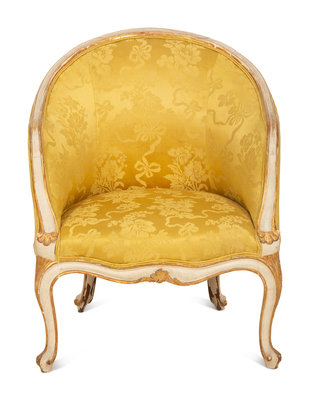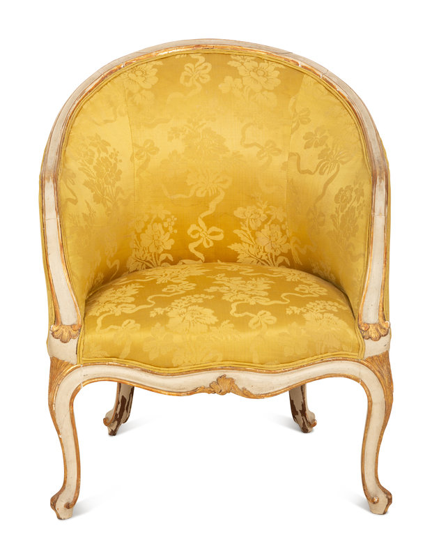 A Louis XV Style Painted and Parcel Gilt Barrel Back Bergere