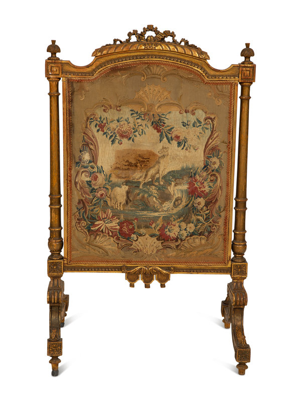 A Louis XVI Style Giltwood Fire Screen with Tapestry Panel
