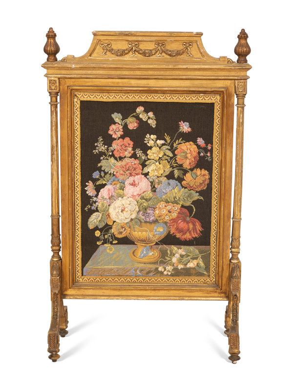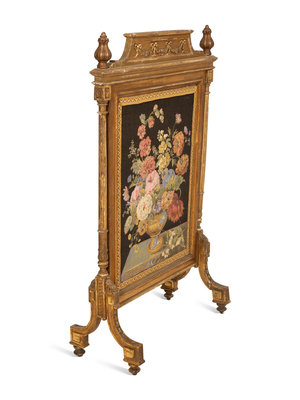 A Louis XVI Style Giltwood Fire Screen with Needlework Panel