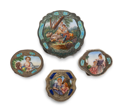 Four French Enameled Silver Powder Boxes