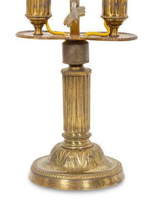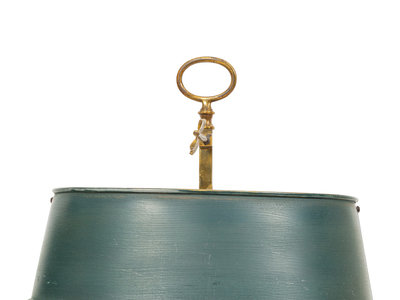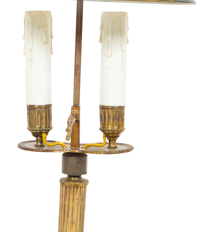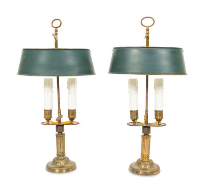 A Pair of French Gilt Metal Bouillotte Lamps with Green Tôle Peinte Shades