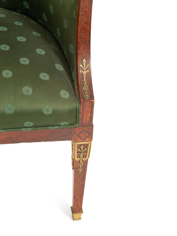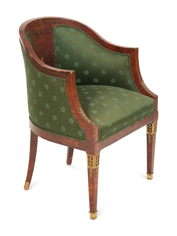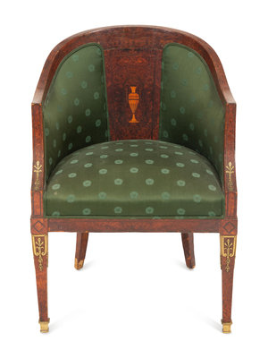 An Empire Style Burlwood Barrel-Back Armchair