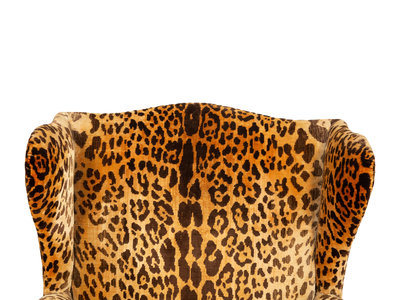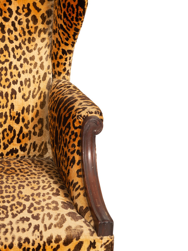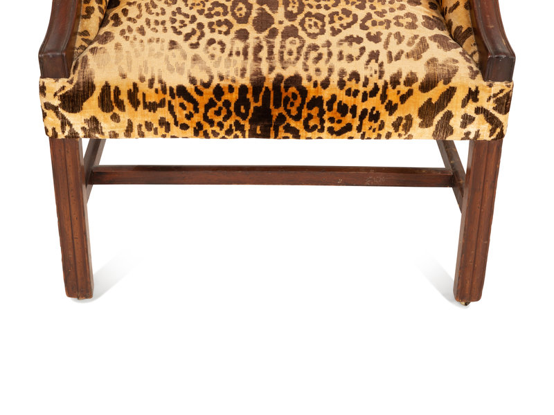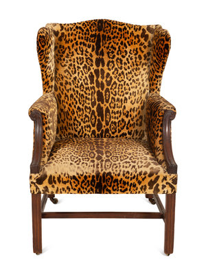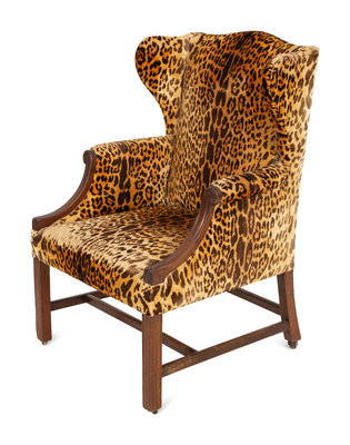 A George III Style Mahogany Wing Chair with Leopard Print Upholstery