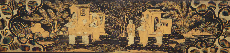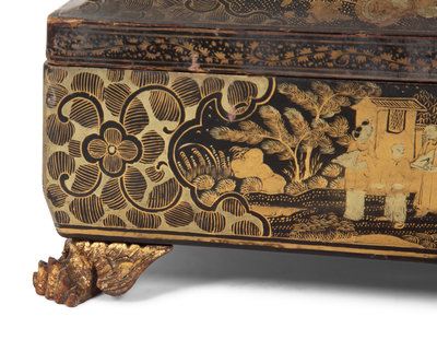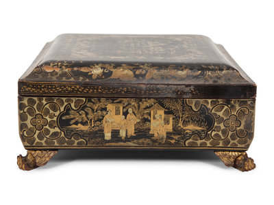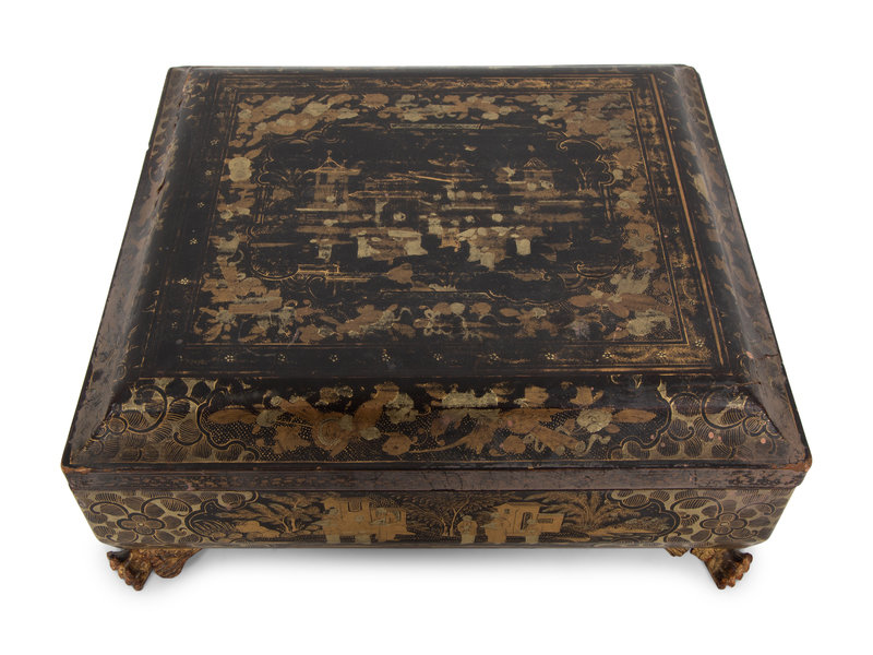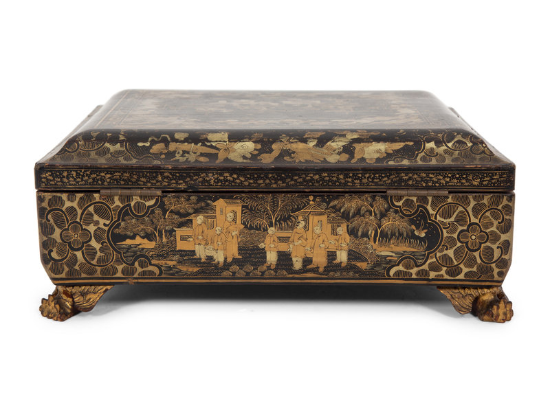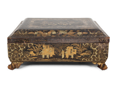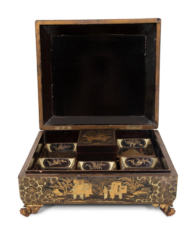 An English Chinoiserie Black and Gilt Laquer Game Box