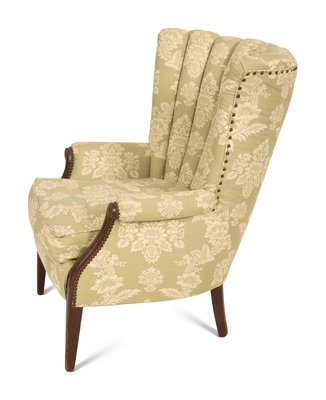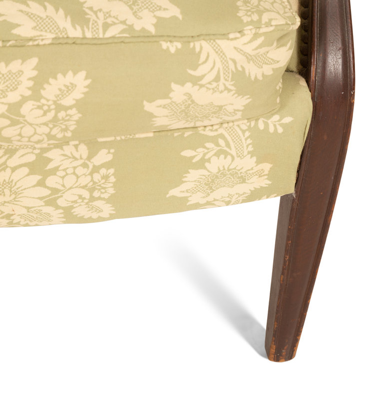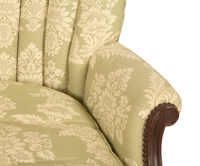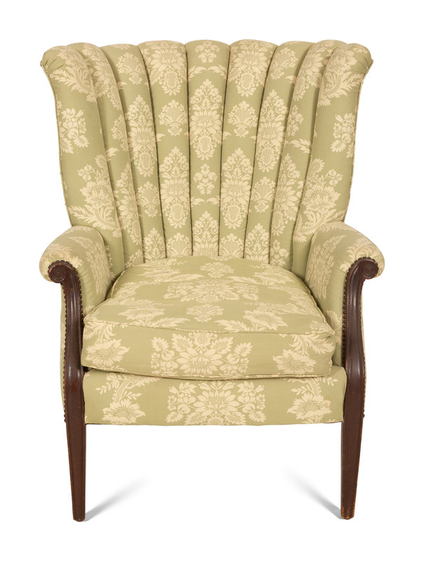 A Green and White Channel Upholstered Mahogany Armchair