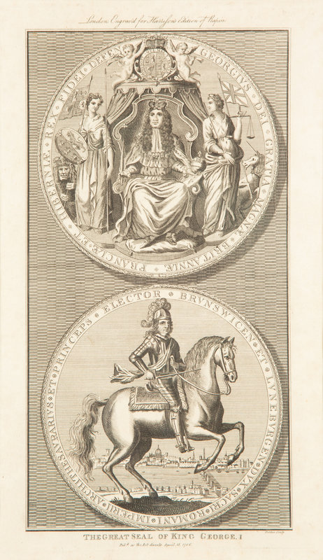 including two of The Royal Highness George Prince of Wales; The Great Seal of King George I; Lord Duncan; James Graham, First Marquis of Montrose; and Sir Edward Coke, Lord Chief Justice.