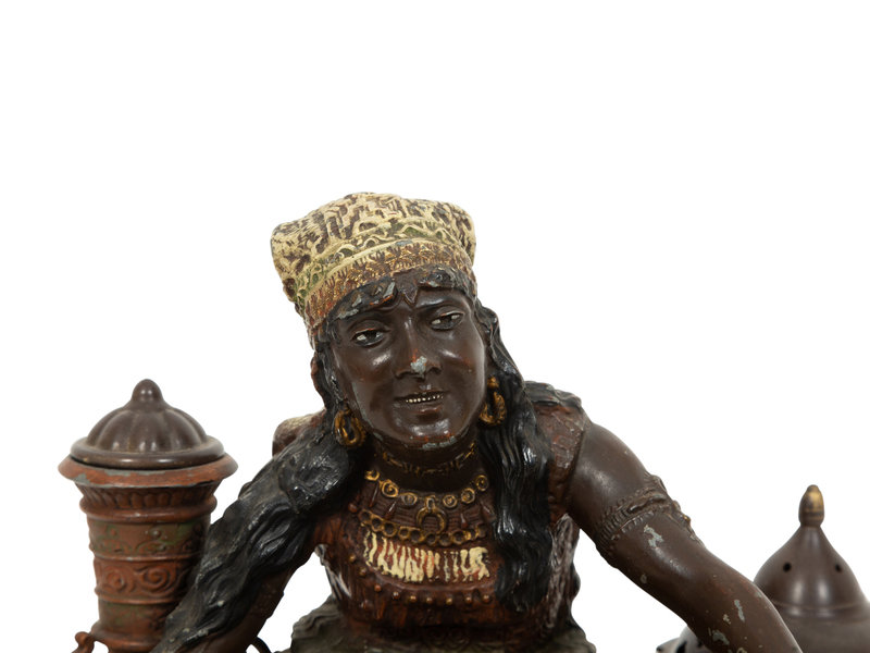 in the form of a seated Moroccan woman holding tray, with two covered ink wells.