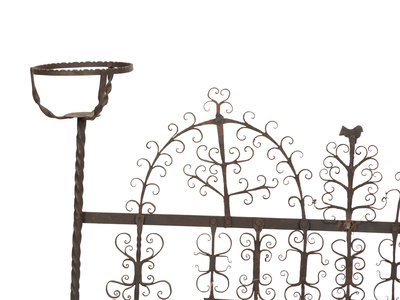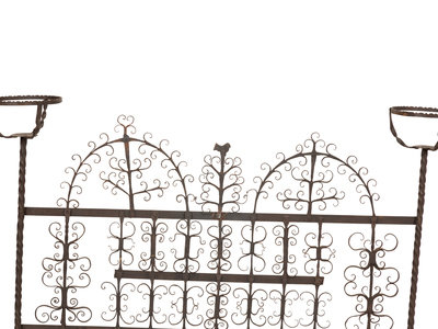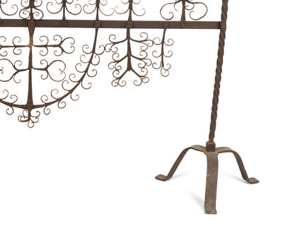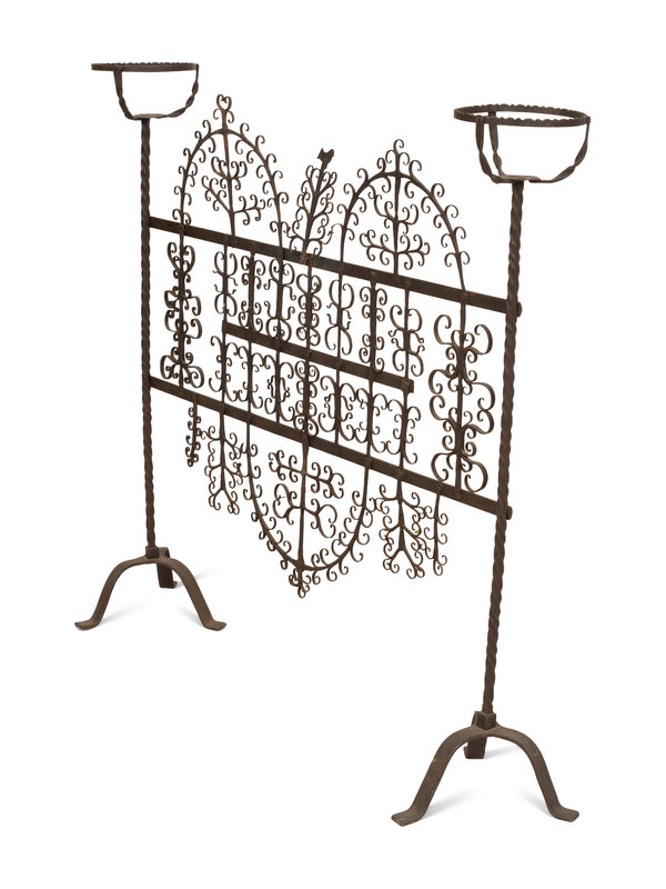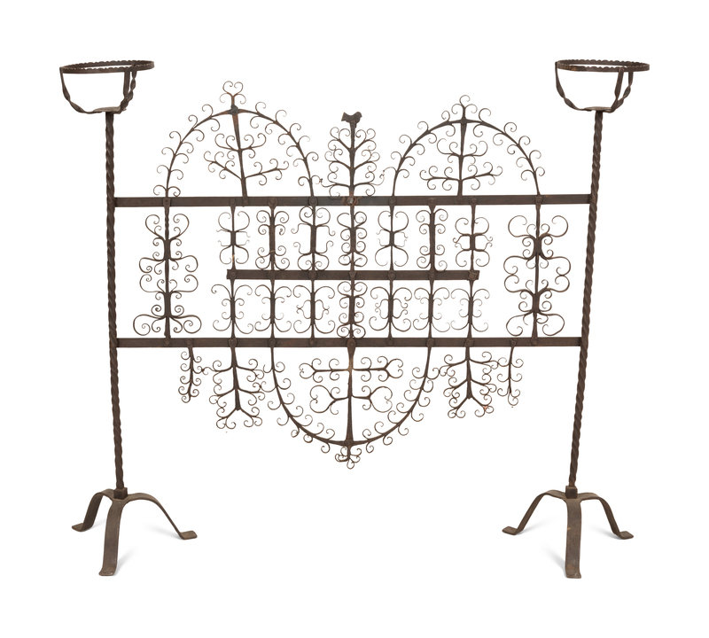 A Mizner Wrought Iron Fire Screen with Candleholders