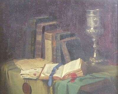 STILL LIFE OF BOOKS, SEALS AND CHALICE