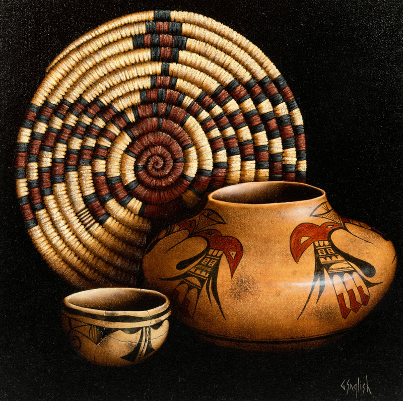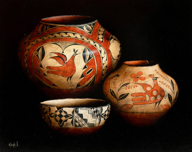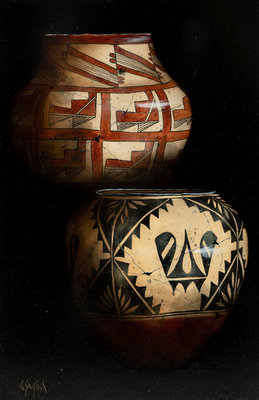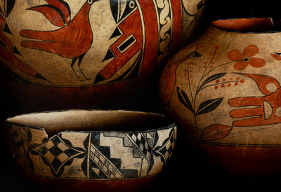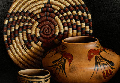 Three Works: Three Pottery Jars, Basket Tray with Two Jars and Two Pottery Jars