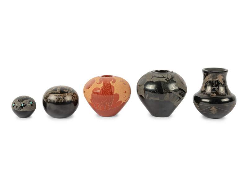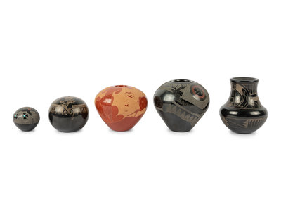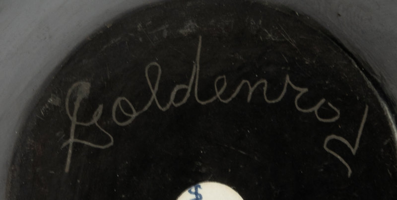 blackware vase with katsina, signed on base; height 4 x diameter 3-1/4 inches