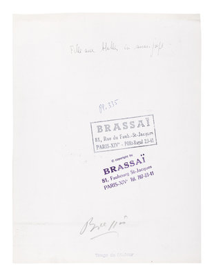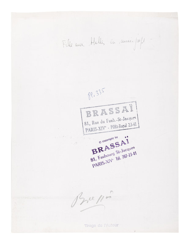 Gelatin silver print, printed 1960s, signed in pencil, titled, negative notation 'Pl. 335' in ink, stamped 'Tirage de l'Auteur' and two copyright credit stamps on the verso.