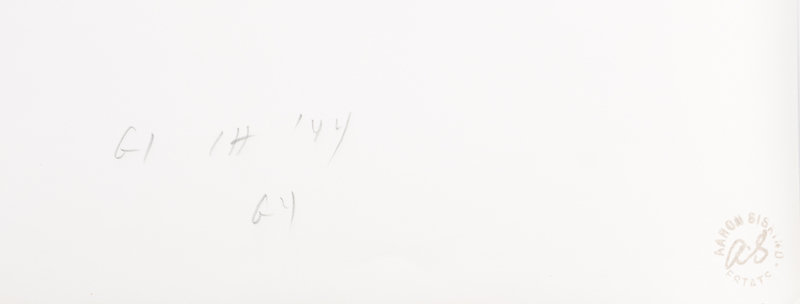 Oversized gelatin silver print, printed before 1991, date, negative notations in the artist's hand in pencil and Estate stamp (added later) on the verso.
