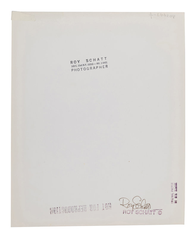 Gelatin silver print, printed c. 1964, signed in ink and copyright credit reproduction limitation stamp on the verso.
