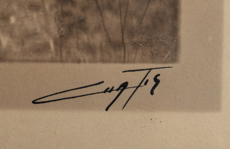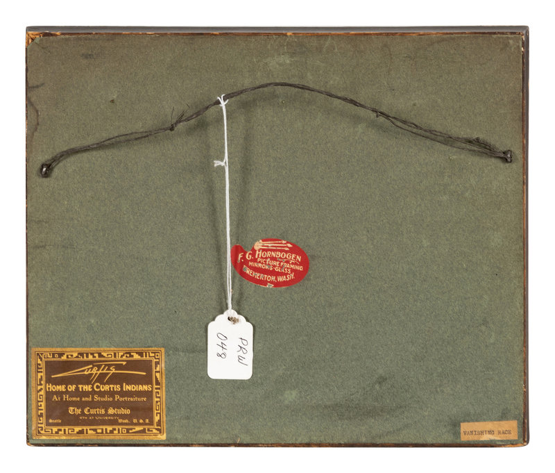 Gelatin silver border print, printed c. 1904, signed in ink in the margin; original 'Seattle' credit label affixed on the original Curtis Studio frame backing.